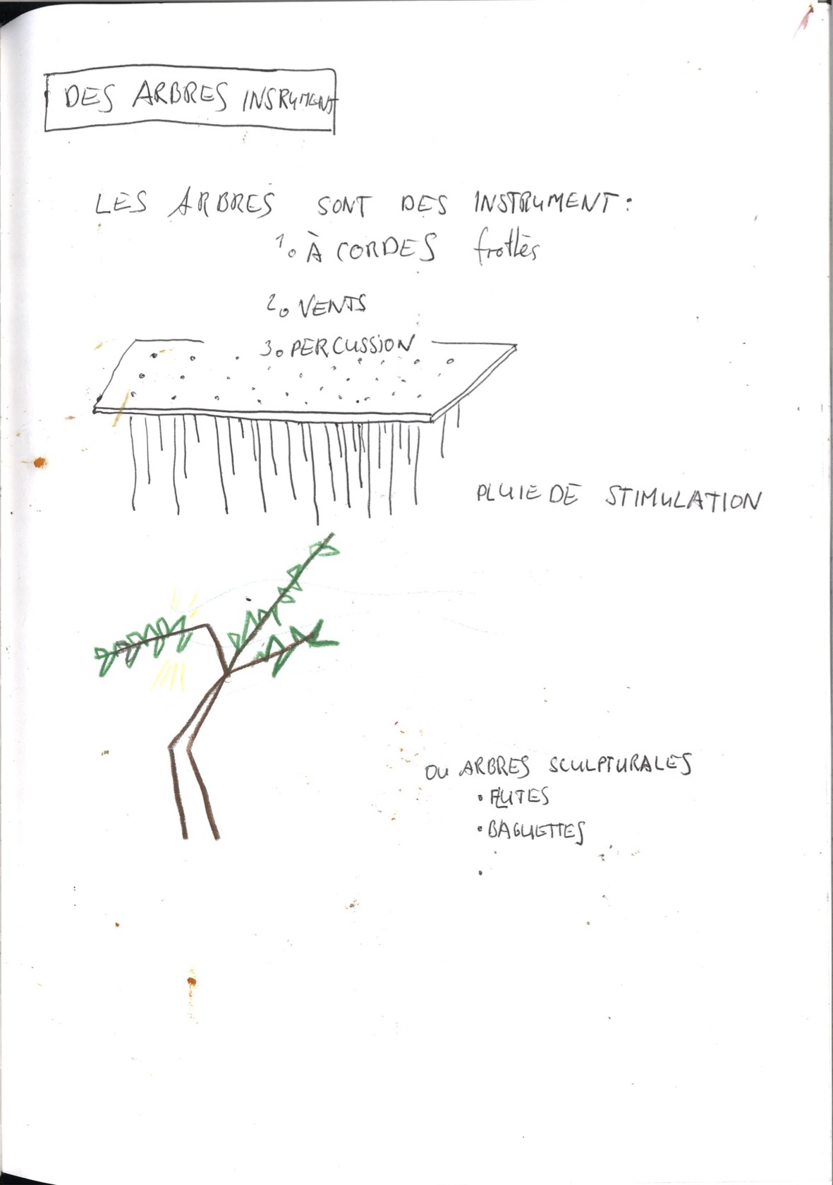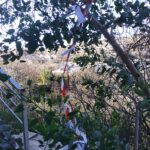 Un ruban dans le quel des feuilles sont accroché. Un objet qui peut s’accrocher soit dans des arbres ou n’importe ou. L’objet peut être un objet visuel, monter le vent, devenir un objet de jeu si plusieurs pendent à en endroit de passage comme un rideau.